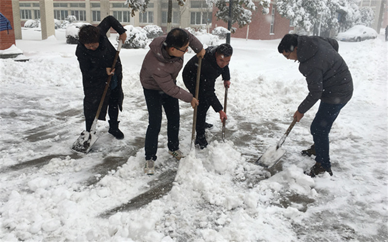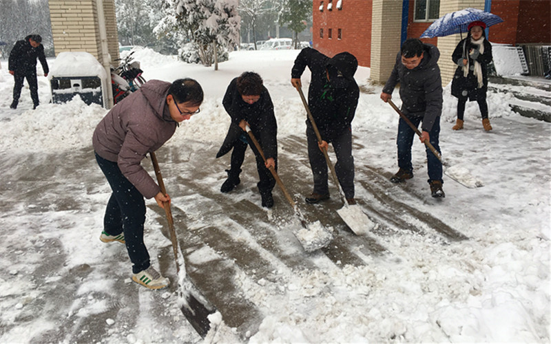 为尽快消除积雪给师生生活工作造成的影响,确保师生出行安全,16877太阳集团于1月4日早上组织师生在综合实验楼二号楼前的道路开展义务清理积雪活动,用自己的劳动为大家的平安出行贡献一份爱心。16877太阳集团行政坐班的领导和教师参与了本次清理活动。