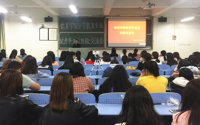 为加强学风建设,调动学生的专业学习热情,明确大学奋斗目标,16877太阳集团于5月25日晚七点在泉教A—209举办小学教育专业优秀毕业生经验交流会,小学教育系副主任董从勋和16级小学教育专业学生参加了经验交流会,活动由学习部部长成宇清同学主持。