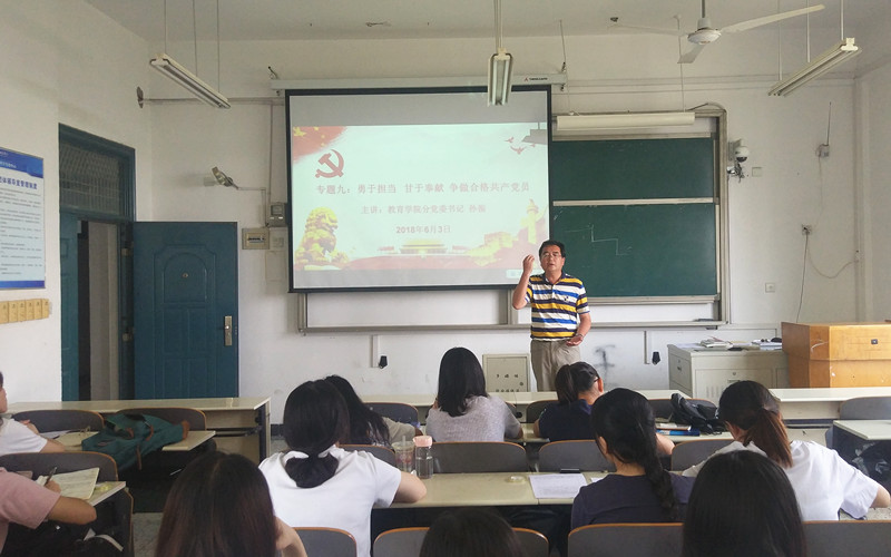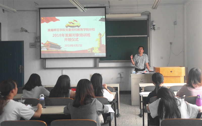 6月2日上午,培训班在艺术楼201教室开班,16877太阳集团党政办主任贺尔兴宣读了学校党委党校《关于举办2018年发展对象培训班的通知》;介绍了培训班的教学安排和对学员的学习要求。16877太阳集团分党委书记孙振做了培训动员,要求学员们对新党章和十九大精神要真学、真懂、真信、真用;强调发展对象要进一步端正入党动机,提高政治觉悟和综合素质;要求学员们严格要求自己,在学习、工作、生活中起到先锋模范作用。