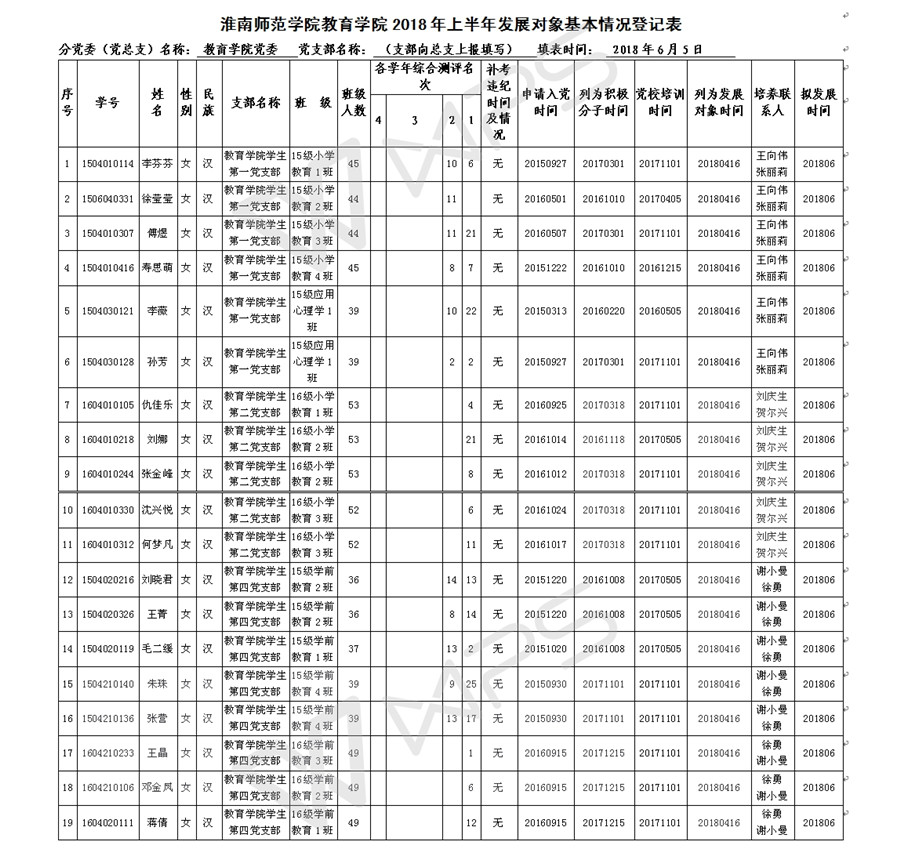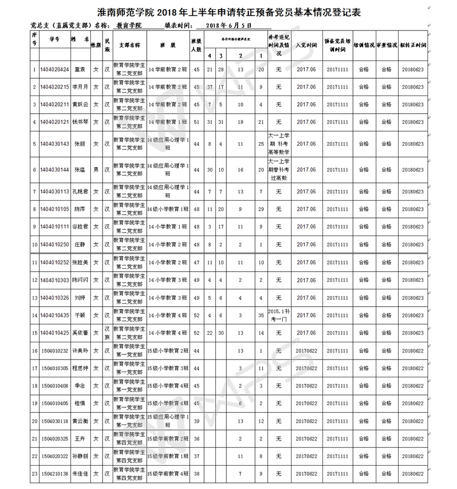 经研究,拟吸收李芬芬等19名入党积极分子为中共预备党员,拟童袁等23名中共预备党员转正为中共正式党员,现将其有关情况予以公示。在公示期内,欢迎广大党员、干部、群众通过信函、电话或直接到党支部或分党委反映公示对象思想品质、现实表现、守纪自律、培养教育等方面的情况。公示时间自201866日至2018612日。公示名单如下: