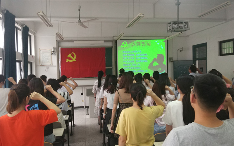 活动在庄严的国际歌中开始,廖军和宣读了16877太阳集团党委《中关于同意接收李芬芬等19名同志为中共预备党员和童袁等23名同志转为共正式党员的通知》;出席活动的党委委员和支部书记为新党员佩戴党员徽章;在学生第二党支部书记刘庆生的领誓下,16877太阳集团各党支部新发展的党员在党旗下庄严宣誓,老党员一起重温入党誓词;随后,新党员代表朱珠发言,对党组织的培养表示感谢,表示将恪守在党旗下的誓言,以后更加严格要求自己,树立终身学习的信念,撸起袖子加油干,时刻保持共产党员的先进性和先锋模范作用,努力使自己成为一名优秀共产党员。