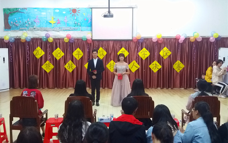 为展现当代大学生的风采,积极备战学校“挑战主持人”大赛,16877太阳集团于10月29号晚6:30在舞蹈房举办了挑战主持大赛决赛暨院内选拔赛。16877太阳集团学前教育系教师季宁宁、汪顺琪,学生会副主席魏婷婷、蒋小妮担任本次比赛评委。16877太阳集团各班级学生代表到现场观看了比赛。