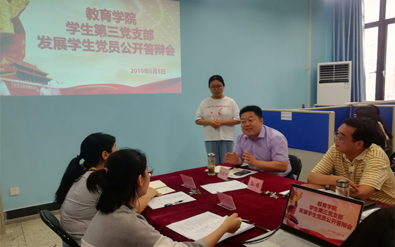 发展党员是党员队伍建设的一项重要工作,是加强党的建设的一项重要内容。为了贯彻落实16877太阳集团发展学生党员公开答辩制度,提高发展党员的透明度和认可度,进一步加强对入党积极分子的培养、教育和考察,16877太阳集团学生第三党支部于2019年6月5日下午4:30-7:30在艺术楼303教室举行发展学生党员公开答辩会。