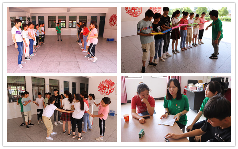 团体辅导,提升素质:帮扶团开展了团体辅导活动,成员们在向孩子们展示了“桃花朵朵开”、“南水北调”、“一圈到底”等活动的游戏规则后,孩子们很快融入了活动之中,操场上不时回荡起孩子们的笑声,活动心得总结环节,成员们鼓励孩子们学会在以后的生活、学习和工作中学会团队合作,优势互补。团辅活动给孩子们带来的不仅仅是团队意识的增强,更是为他们带来了精神上的陪伴,带来了开心和快乐。