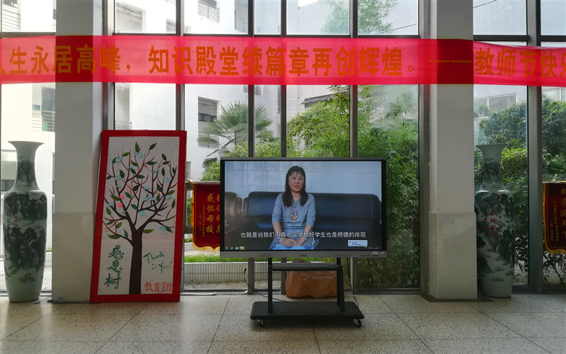 艺术楼大厅内则循环播放着感恩师德的视频。视频中,除了学生代表表达了对老师的感谢和节日祝福“我最喜欢的教师”——董文、王亚东李艳玲以及优秀教育工作者王向伟等老师分享自己任教多年的一些深刻经历和感想表达身为一名教师所拥有的一种幸福感。