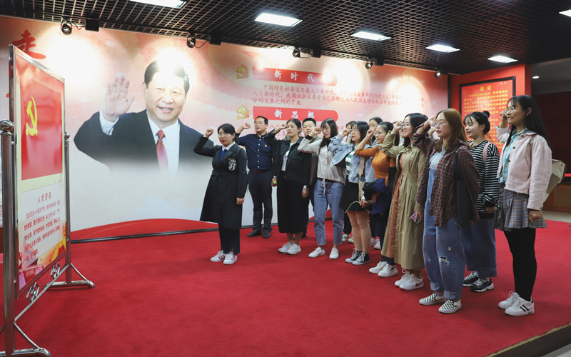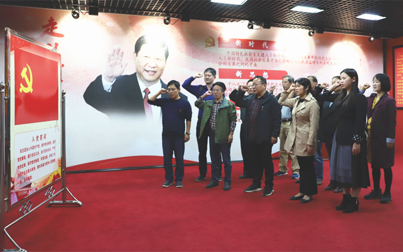 在16877太阳集团党史教育馆党员们还以支部为单位重温了入党誓词,参加活动的全体党员面向党旗,庄严、激昂地重温了入党誓词。