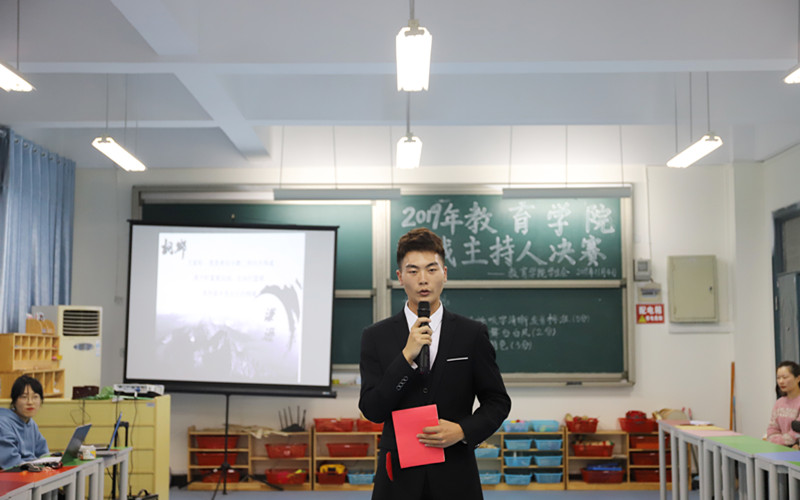 比赛共分为三个环节,分别是一分钟的自我介绍,三分钟的模拟主持,五分钟的才艺展示。在自我介绍环节中,选手以自己的名字为主题,围绕着自己的兴趣爱好,对自己展开了一个立体的介绍。在第二个环节的模拟主持中,各位选手,模拟的情景均不相同,有迎新晚会的现场,有以孝敬父母为主题的文艺汇演,有庄重神圣的婚礼现场……但都把自己最好的状态发挥到极致。接着比赛进入了激情澎湃的第三环节——才艺展示,在此次环节中,大家纷纷拿出了自己的绝活,其中一等奖获得者胡晨月的舞蹈傣族小妹,优美的舞姿赢得了台下观众的阵阵掌声。最后经过评委打分,来自19学前升本一班的胡晨月及19学前教育一班的李宁摘得了桂冠,赢得了本次比赛的冠军。