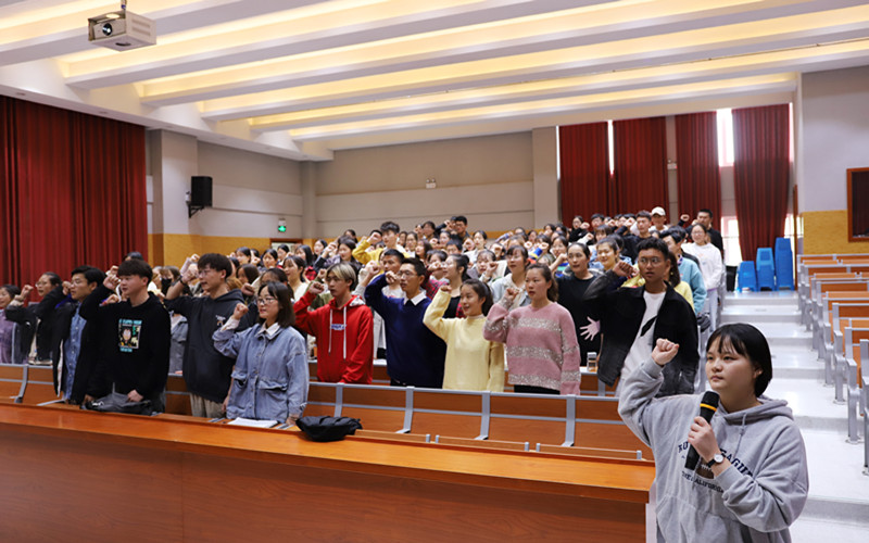 会议分为五项议程。会议第一项:全体奏唱中国共青团团歌。伴随着庄严的音乐响起,在场的每一位学生无不表情肃然,以饱满的热情唱出了作为一名共青团员的骄傲。会议第二项:重温入团誓词。在16877太阳集团团总支副书记胡崔娟的带领下,每一位学生都进行了庄严宣誓。会议第三项:由王向伟老师宣读《关于举办2019年16877太阳集团青马工程培训班(第19期业余团校培训班)的通知》,他指出在指导思想上,要深入贯彻习近平新时代中国特色社会主义思想、党的十九大精神、团的十八大精神。王向伟老师详细介绍了培训的具体内容,希望广大团学干部能够积极参加相关活动,以饱满的热情对待工作,在工作中提升自我。会议第四项:团校学员代表19级小学教育2班王婷进行发言。她引用梁启超先生的名言向广大共青团员诠释了青年的重要责任,表明了将努力提升自我的决心,极大的鼓舞了学生们的工作热情。