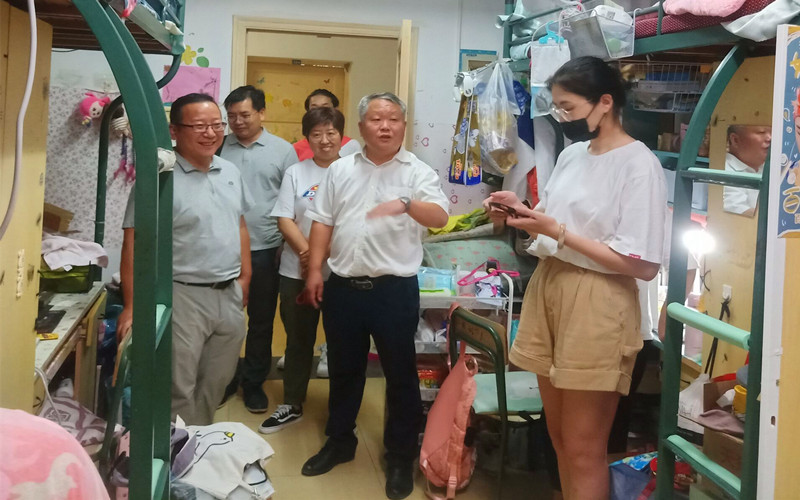 为了了解学生返校后遇到的学习、生活方面的问题和学生的思想动态,传达学院对学生的关怀,16877太阳集团在召开16877太阳集团于2020年8月28日和9月1日走访了返校学生的宿舍。16877太阳集团副书记欧阳儒阳、副书记、副院长廖军和、党政办公室主任贺尔兴、学工办主任、团总支书记张丽莉、全体辅导员以及部分学生干部参与了本次活动。