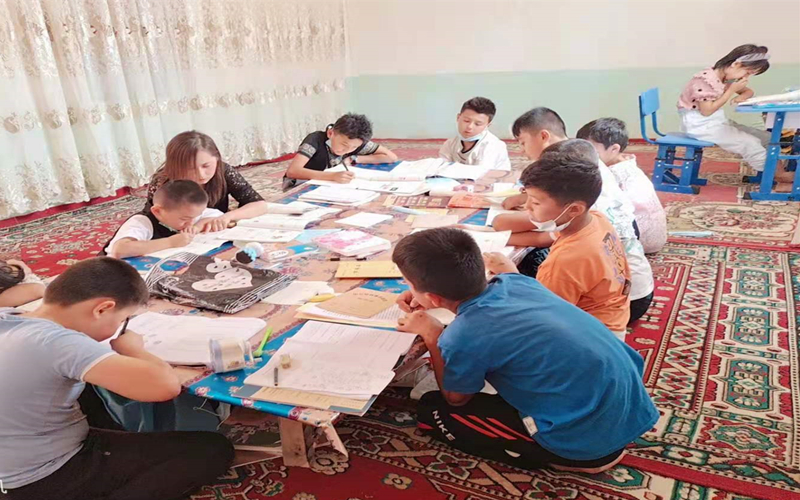 热则耶·库尔班和热米莱·奥斯曼两位同学分别是阿图什市松他克乡托库勒村、喀什市百什克热木乡萨衣巴格村的返乡大学生,这个暑假,在当地村委会与驻村干部的帮忙下,她们利用假期,为农忙期间家长没法照顾的孩子、村里的留守儿童辅导国家通用语言文字课、讲解暑假作业中的难题,并结合实际,为孩子们从交通安全、防溺水、消防安全、饮食安全和用电安全等方面开设了专题安全教育课程。