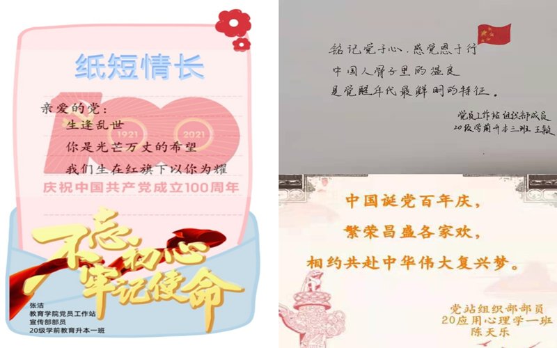 着力于深入思考,抒发真挚情感。“一祝党岁月风平,衣襟带花;二祝党山河锦绣,四海承平”,“亲爱的党:生逢乱世,你是光芒万丈的希望,我们生在红旗下以你为耀”,“我们用真情表达对党的爱,用最美的话献给党,辞浅情深最绵长”等等,这深情的话语与澎湃的情感,发自同学们学习百年党史后的深刻体会。也正是通过百年党史的深入学习,学生党员从历史、理论、实践等多个维度理解了马克思主义“行”、中国共产党“能”、中国特色社会主义“好”三者是相互支撑、相互砥砺、相互成就的辩证统一体。马克思主义“行”是中国共产党“能”、中国特色社会主义“好”的学理根源,因此具有“归根到底”的意义和价值,从而成为中国共产党的灵魂和旗帜,从而成为学生党员无悔的信仰追求与奋进动力。