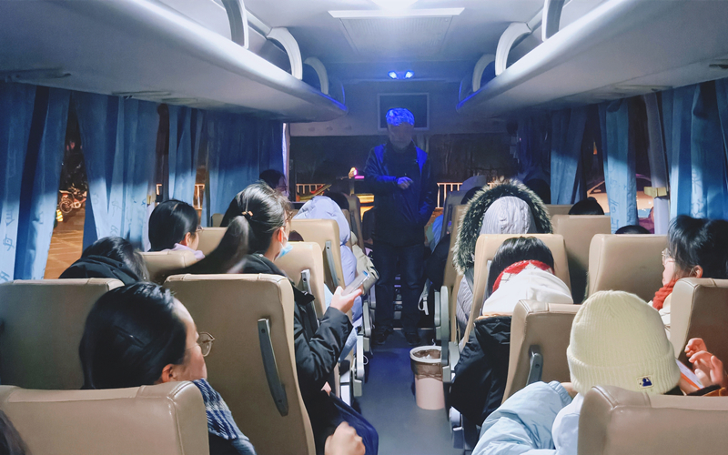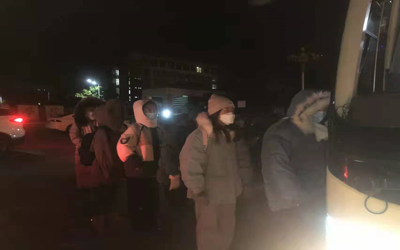 早上6点30分,49位参加硕士研究生招生考试的学生在学校大校门集合,在学生干部的协助下,迅速完成人数清点、提醒检查考试相关证件、排队有序乘车等工作,保证考生按时抵达考点,并在考完后将所有学生安全顺利送回学校。