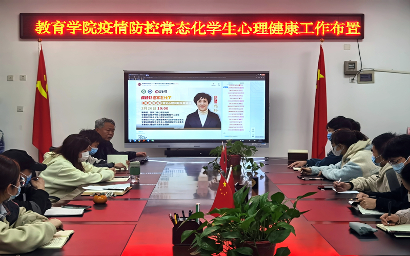 讲座结束后,党委书记欧阳儒阳组织召开疫情防控常态化学生心理健康工作布置会,进一步了解同学们在校园封闭管理时期的心理状况,并就大家反映的情况和当前疫情形势下大学生心理健康问题进行解读。他要求,各班级心理委员要主动学习了解疫情防控期间同学们常见心理问题的识别,及时掌握情绪调解的有效方法,提高学习能力和水平;要成为学校管理的“排雷兵、传声员”,同学们心理成长的“陪伴者和支持者”,及时发现反馈班级同学存在的各类异常表现,提高心理干预工作的及时性、针对性和有效性;要立足“助人自助,互助和谐”基点,一起迎接战“疫”胜利的春天。