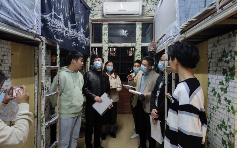 走访中,万军一行与同学们进行了亲切交谈,详细了解同学们的学习状况、就业准备等情况,并对宿舍安全、文化建设等方面进行了细致检查。检查中,对照思想素质、学习氛围、文化建设、内务卫生、生活安全等指标体系要求,万军一行叮嘱同学们要强化思想政治引领,树立安全意识,强化内务和安全建设,以宿舍为抓手,进一步提高大家的政治觉悟,发挥好主人翁精神,凝聚集体智慧,真正把宿舍文化育人的成效落到实处。