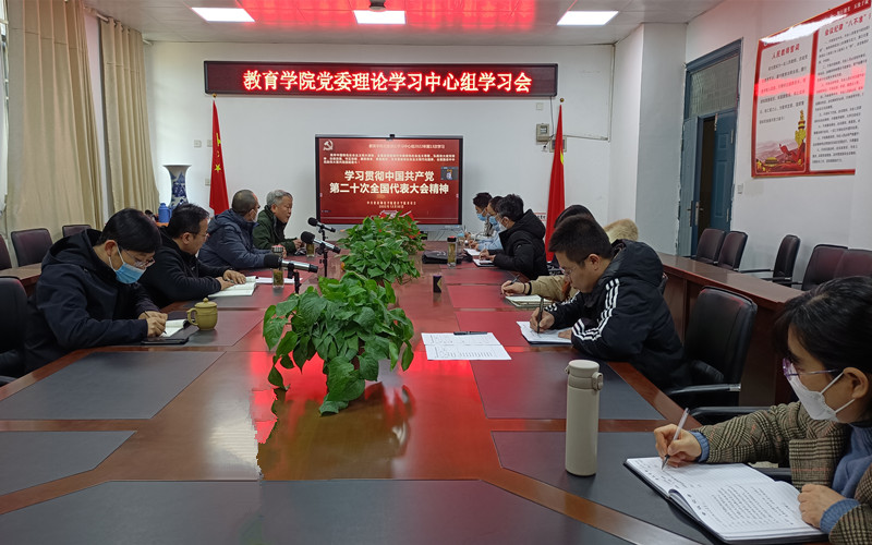 教育学院党委书记欧阳儒阳首先领学了党的二十大报告中的新观点、新论断、新思想、新战略、新要求。他指出,二十大报告全面总结了过去五年的工作,系统回顾了新时代十年的伟大变革,对未来五年乃至更长时期的发展方略进行了全面部署,体现了全党全军全国各族人民的共同心声。他强调,学习宣传贯彻党的二十大精神是当前和今后一个时期的首要政治任务,教育学院党委全体师生要切实提高政治站位,迅速掀起学习宣传贯彻二十大精神的热潮。他要求,领导干部要以身作则、以上率下,加强统筹部署,全方位、立体式、全覆盖推进党的二十大精神进课堂、进头脑,引导全院师生深刻领悟“两个确立”的决定性意义,推动党的二十大精神在学院落地生根、开花结果。