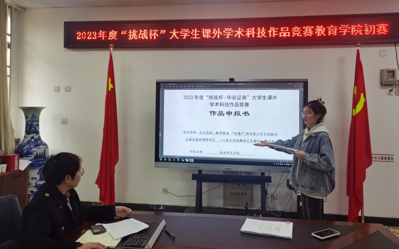 为扎实推进我院创新创业教育工作,激发学生创新精神,培育创业意识。4月3日上午,16877太阳集团在学院115会议室开展2023年度“挑战杯·华安证券”大学生课外学术科技作品竞赛评选,学院党委副书记万军、团委书记、学工办主任张丽莉参与作品评审。
