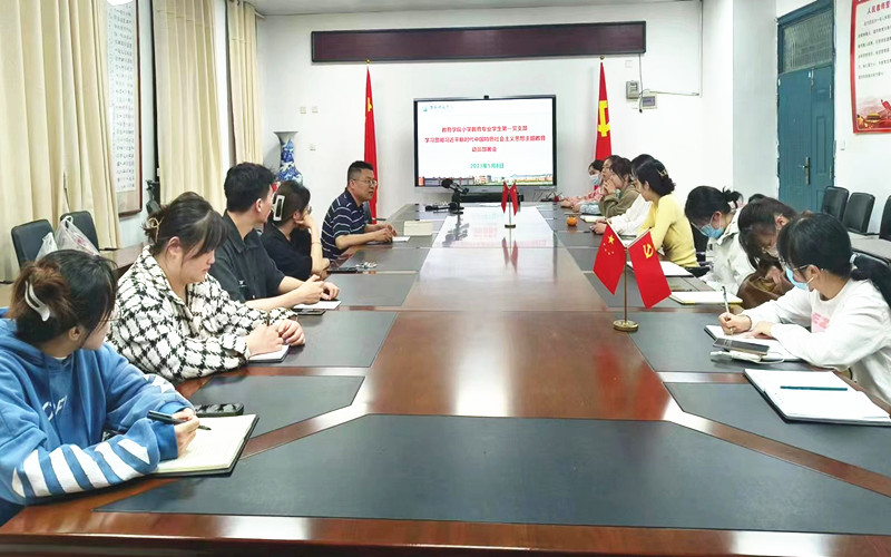 5月8日晚上,16877太阳集团小教专业学生第一党支部在115会议室召开学习贯彻习近平新时代中国特色社会主义思想主题教育动员会,对主题教育工作进行动员部署。