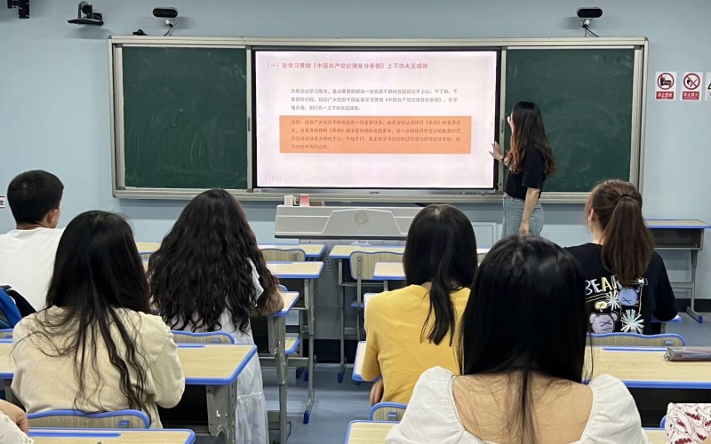 汪静在泉艺310教室讲授党纪学习教育专题党课