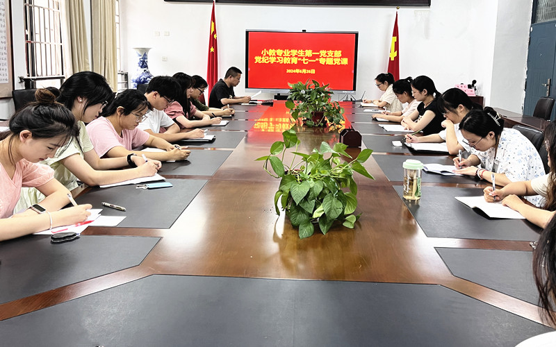 按照上级部署要求,6月26日下午,小学教育专业学生第一党支部在115会议室召开党纪学习教育“七一”专题党课。